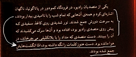 2. متن میان دو صفحه که در یک تصویر به هم چسبانده شده است . درخواست فرستنده: حذف جمله ابتدای صفحه و علامت گذاری دو جمله داخل متن