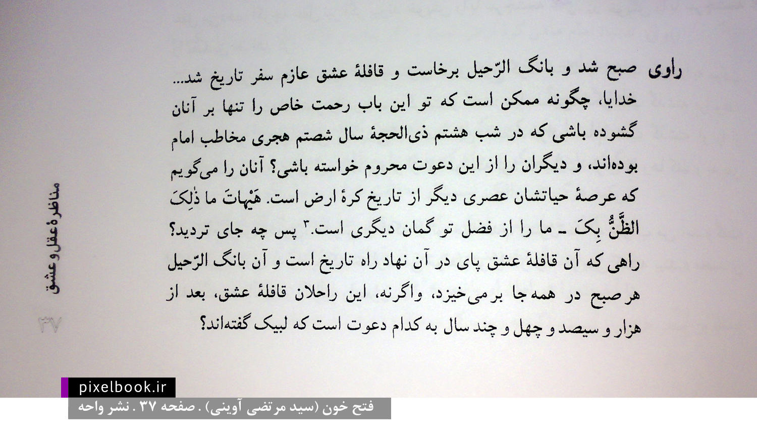 در میان کتابهای بسیاری که دربارة واقعة عظیم کربلا نگاشتهشدهاند، اندک هستند کتابهایی که نویسندگانشان کوشیدهاند علاوه بر ابراز شیفتگی و بیان عظمت واقعه و مظلومیت سیدالشهدا و یارانش، نقبی به حقیقت ماجرا بزنند و در حد توان خود، پرده از راز بزرگ کربلا بردارند. «فتح خون» سید مرتضی آوینی از این معدود کتابهاست.
