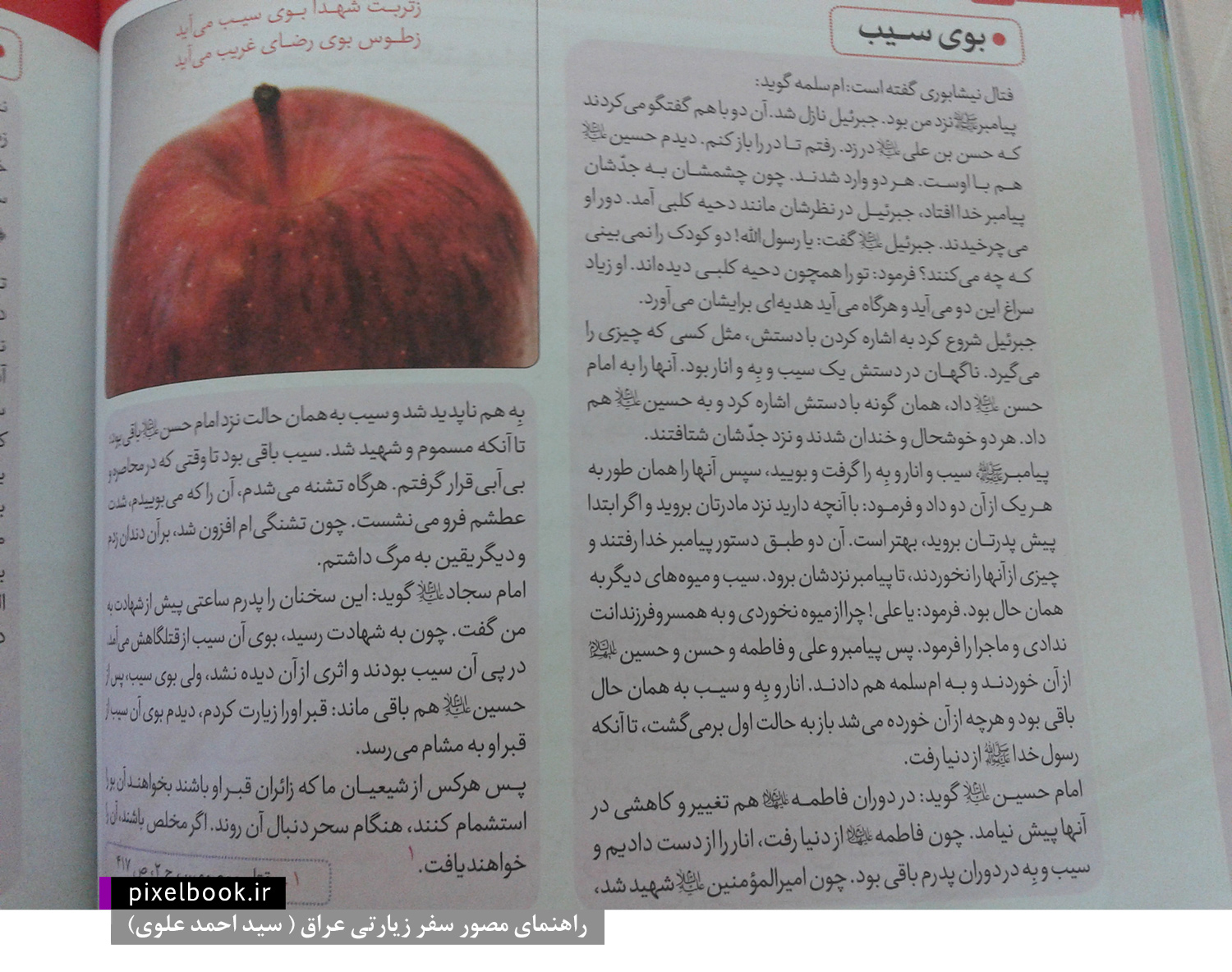 بخشِ محبوب من، بخشِ 'ستارگان حرم' ش هست، که نقشهء خیلى خوبى از مکان دقیق دفن علما در حرم هاى شریف کشیده، که خیلى راهگشا بود براى من. (مثلاً علمایى که توو حجره هاى حرم امیرالمؤمنین دفن بودند و هیچ راهنما/تابلو/نمادى نبود ازشون و من ازین کتاب پیداشون میکردم و میرفتم سراغ شون.. از خدّام ام که میپرسیدم تأیید میکردند صحت ش رو)
